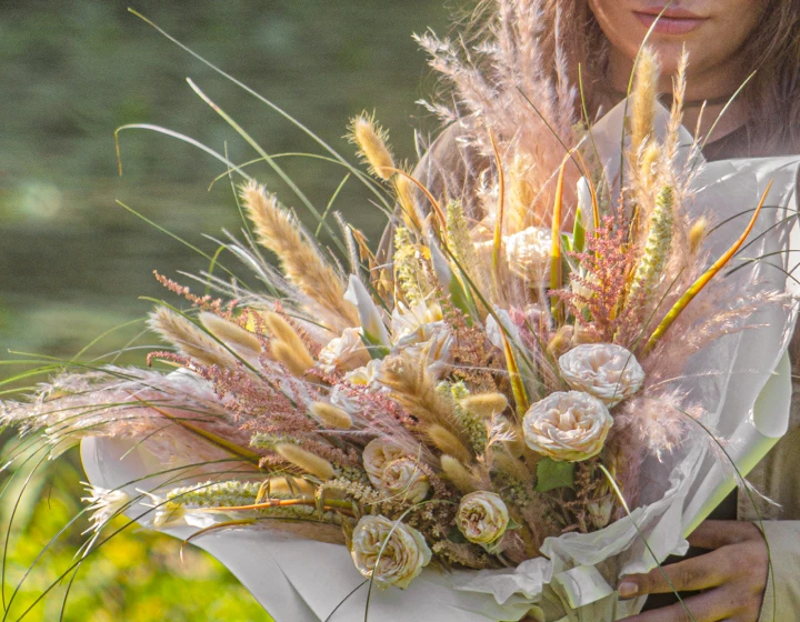 • «Павловский парк»: Нежные садовые цветы в сочетании с травами и сухоцветами, создающие образ собранного в парке гербария.