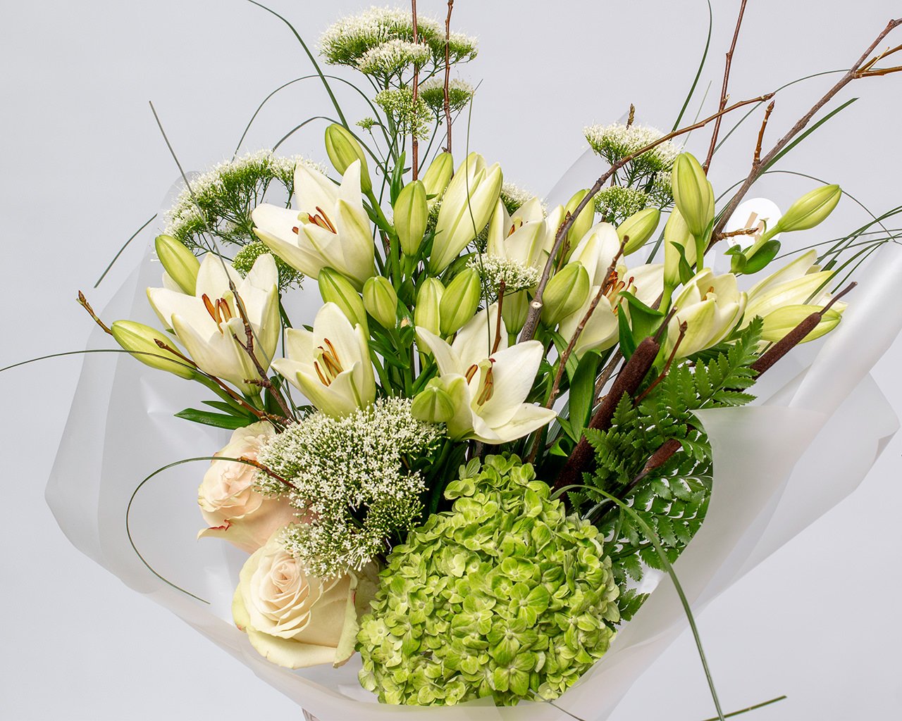 В букете есть сезонные цветы - они могут быть заменены на аналогичные по стоимости с сохранением концепции букета. Указанные цены действуют при оформлении заказа на сайте.