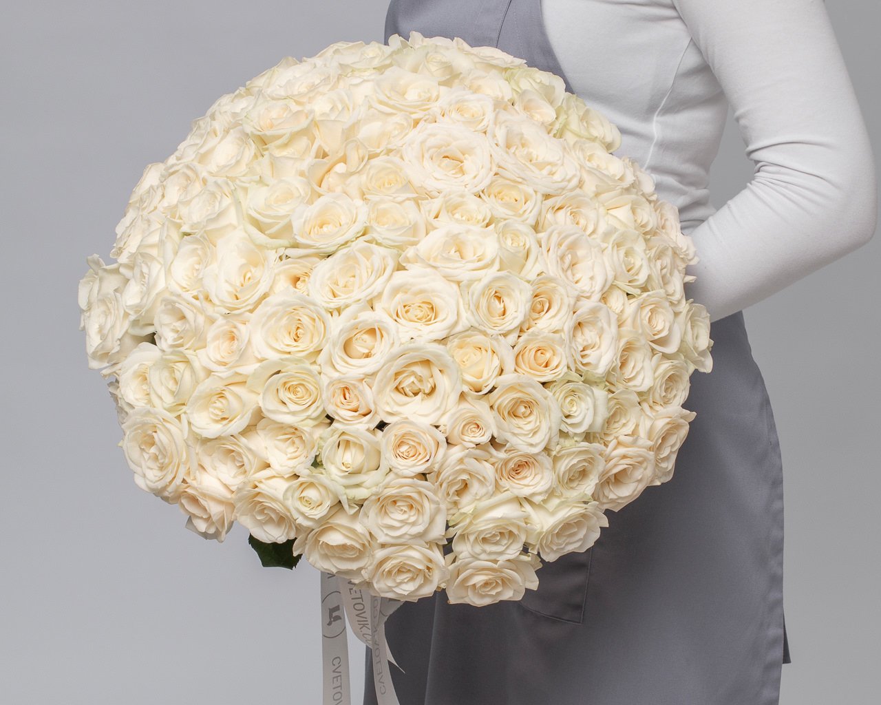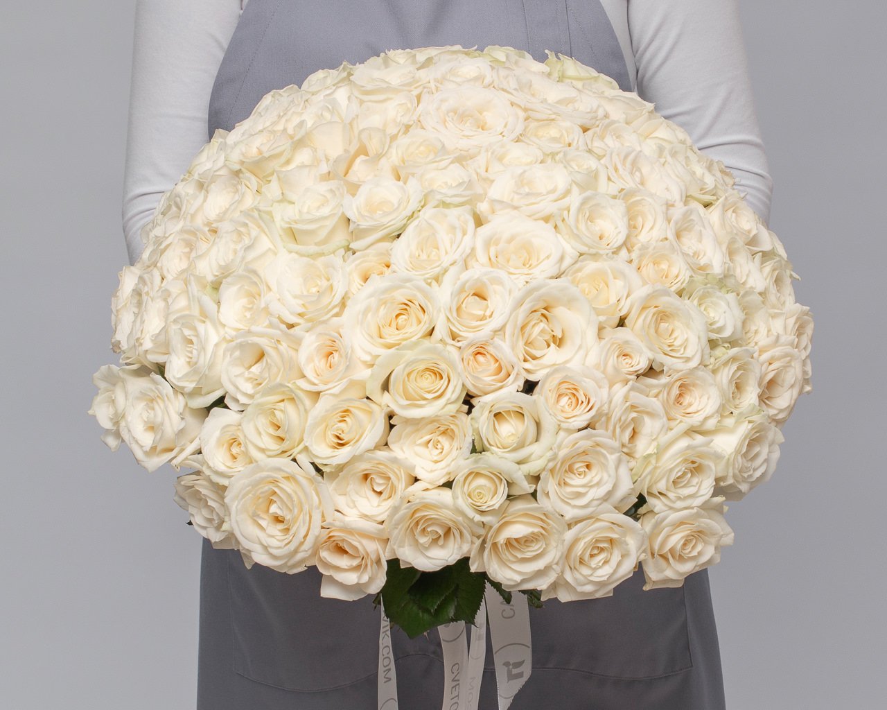 Букет из 101 белой розы 35-40 см (Россия) под ленту
