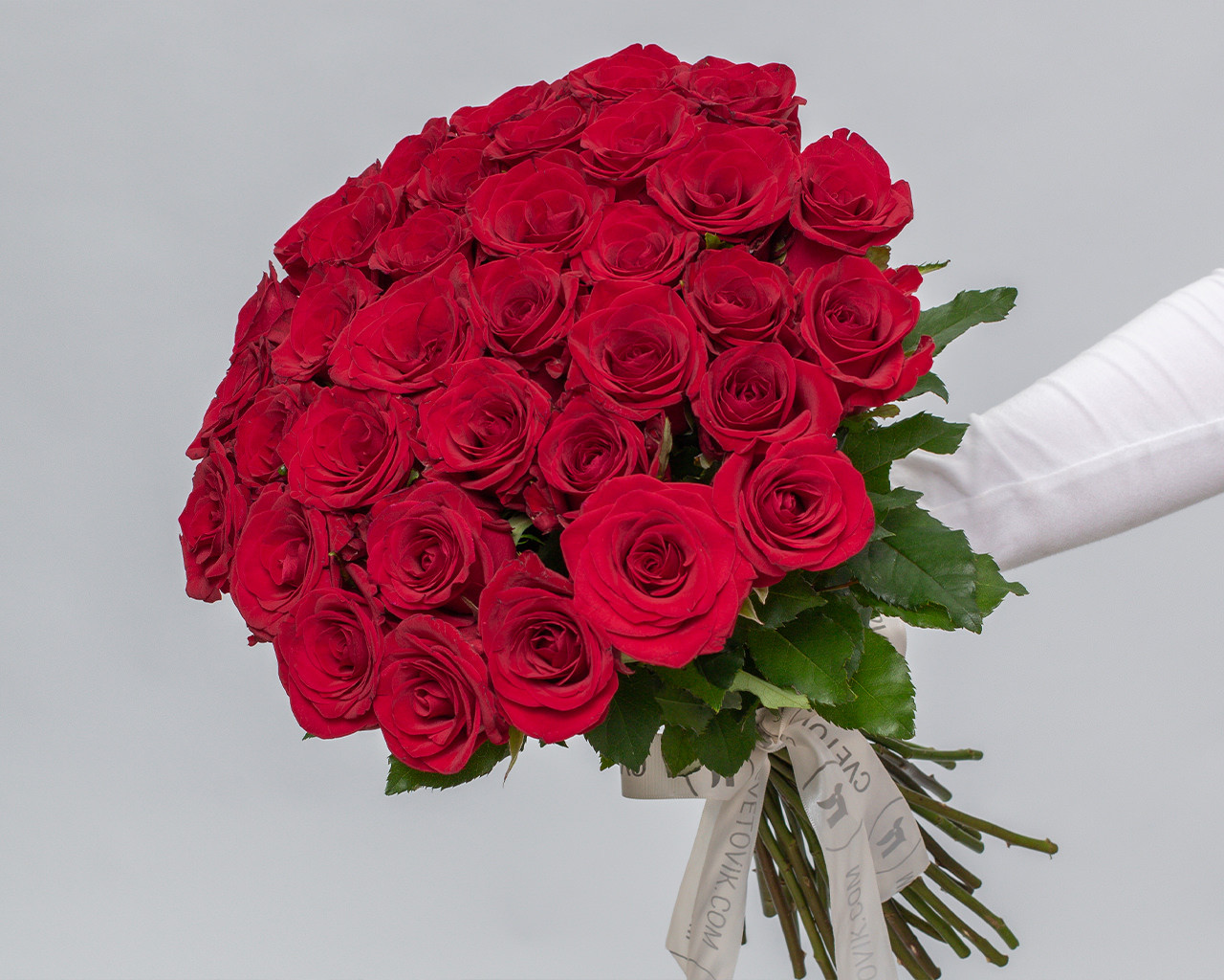 Состав: роза Россия 50-60 см 35 шт., лента атласная 1 шт.