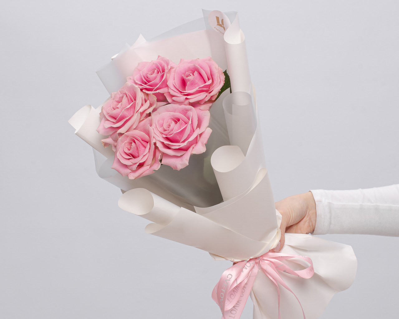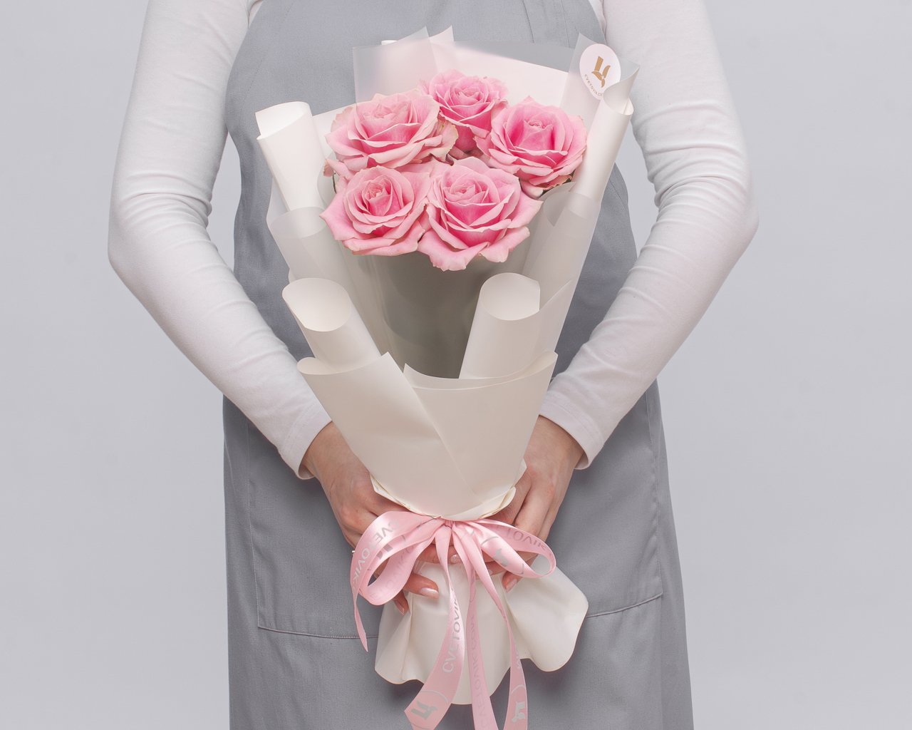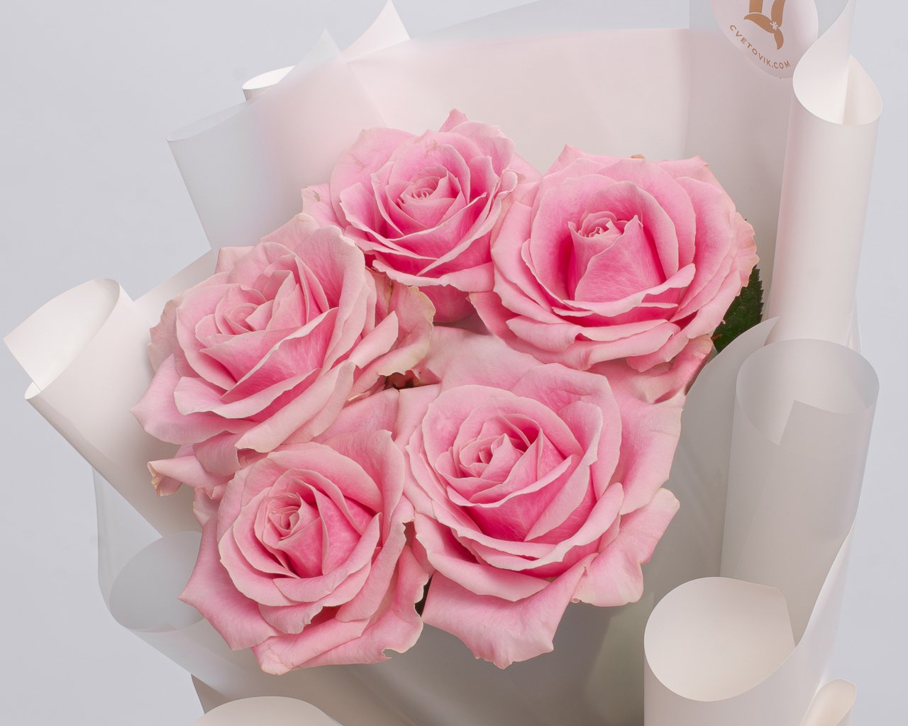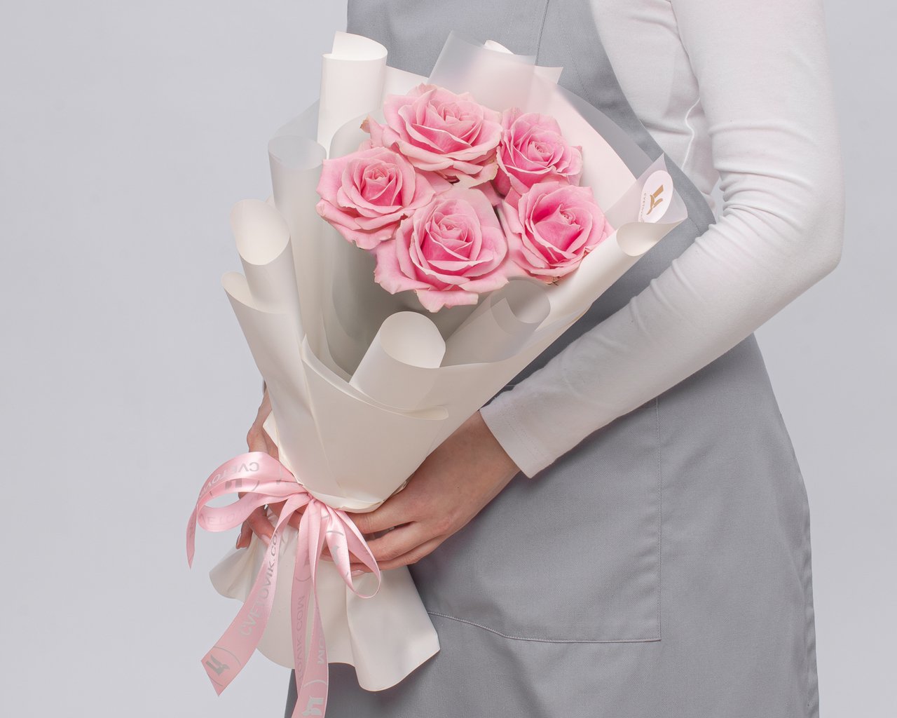 Букет из розовых роз 50-60 см (Россия) в упаковке 5 шт