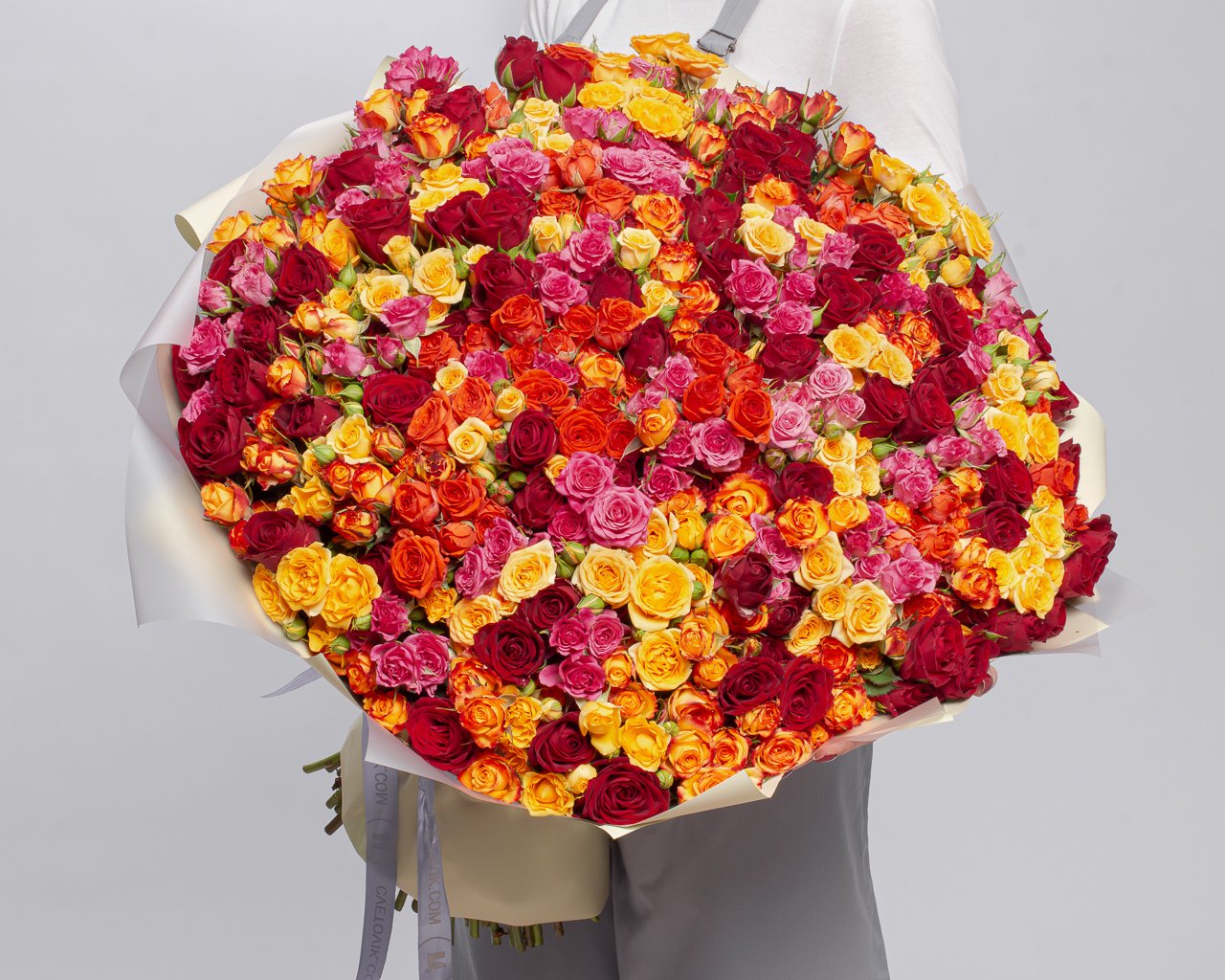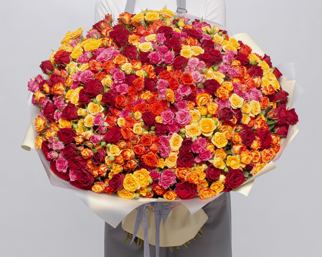 Букет из 101 кустовой высокой розы микс 70 см (Кения) в упаковке